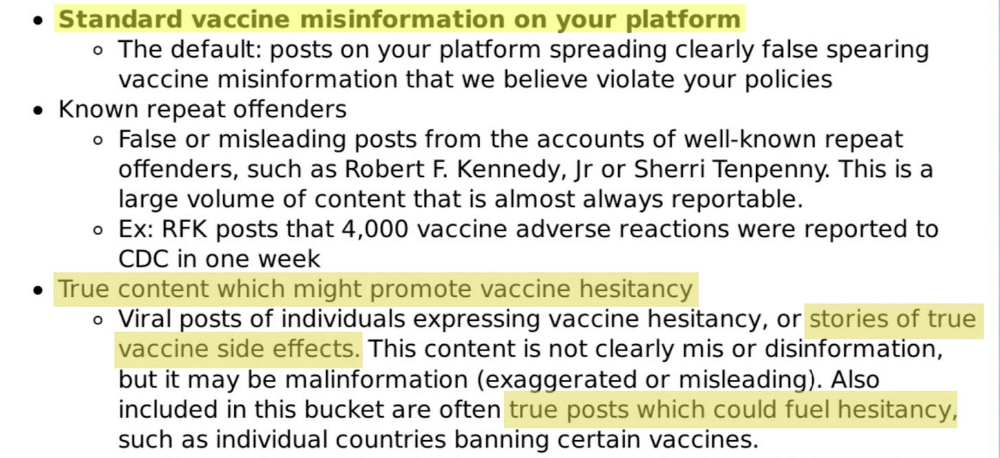 When the Virality Project said it considered, “true stories of vaccine side effects” to be “misinformation”, it wasn’t joking, and it flagged content to its Big Tech partners accordingly.