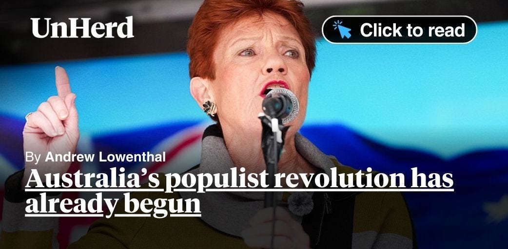 I’ve just written for UnHerd about the wild rise of Australia’s Right-populist One Nation party. Largely a backlash against mass-migration, their support has gone into overdrive since the Bondi terrorist attack and grown still further in the wake of new hate speech laws passed in parliament last week.
